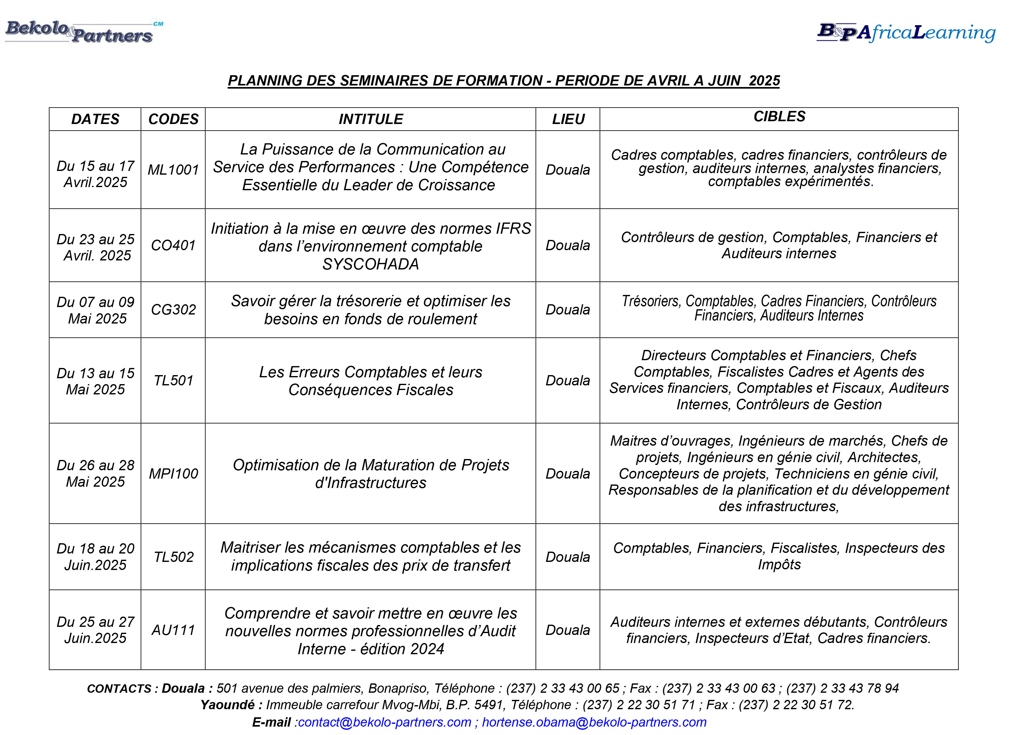 C’est dans ce cadre et ce contexte que la firme internationale de prestations intellectuelles Bekolo & Partners, à travers sa structure spécialisée en formation professionnelle, présente à ses clients installés ou ayant des intérêts économiques dans les pays africains, son offre de formation pour l’année 2022.